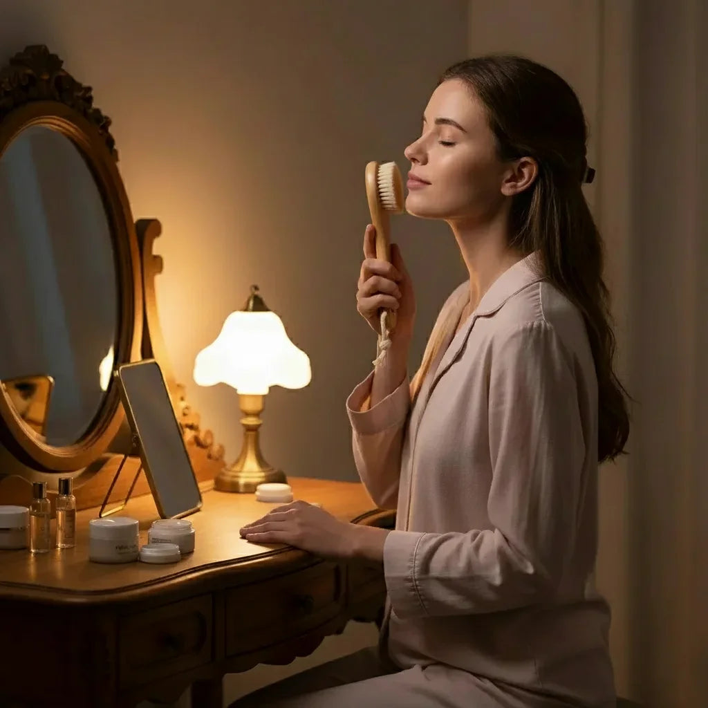 Oubliez les nettoyages agressifs. Les poils délicats en crin de cheval pur caressent votre peau, la laissant incroyablement propre, fraîche et sans irritation.